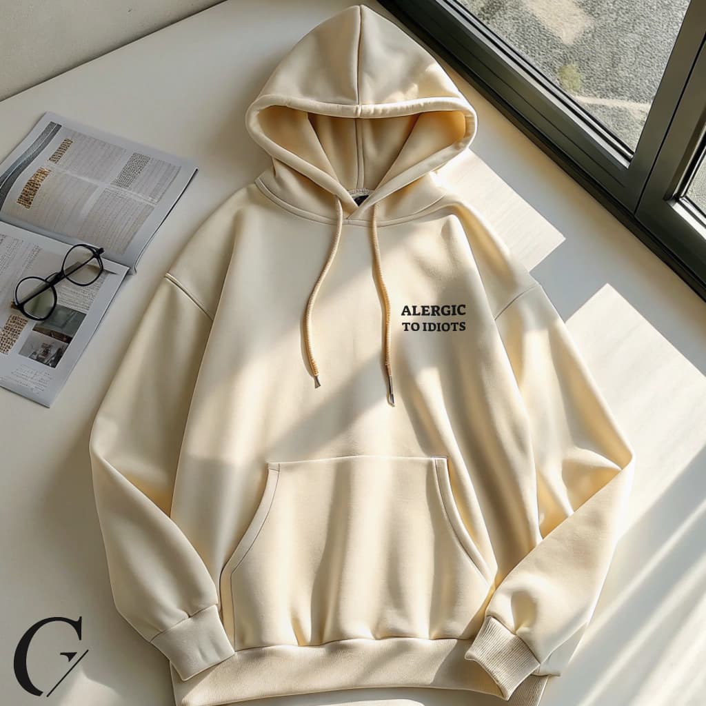 Featuring a clean minimalist text design with a bold attitude, the Allergic to Idiots™ statement reflects modern street culture and unapologetic individuality. The relaxed drop-shoulder silhouette and oversized fit offer effortless comfort and a contemporary streetwear look that works for casual outings, late-night walks, or laid-back daily styling.