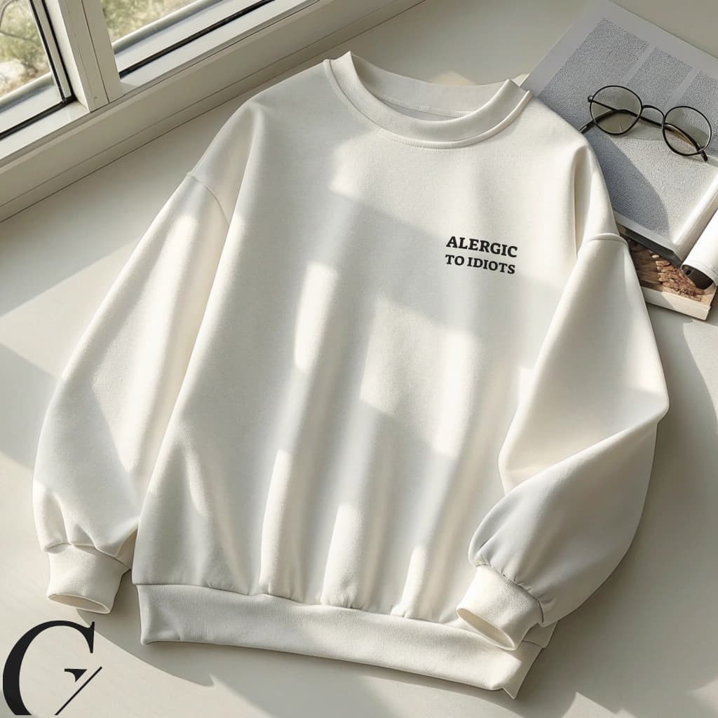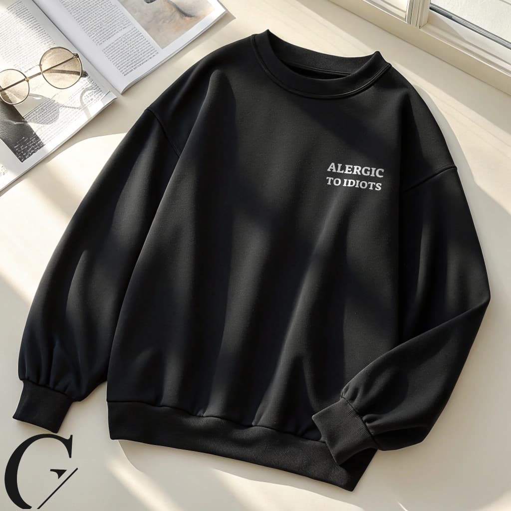 Designed with a clean minimalist text statement, the Allergic to Idiots™ sweatshirt reflects modern street culture and a confident, no-compromise mindset. The relaxed drop-shoulder silhouette and oversized fit provide effortless comfort and a contemporary streetwear look that fits seamlessly into casual outings, late evenings, or relaxed day-to-day styling.