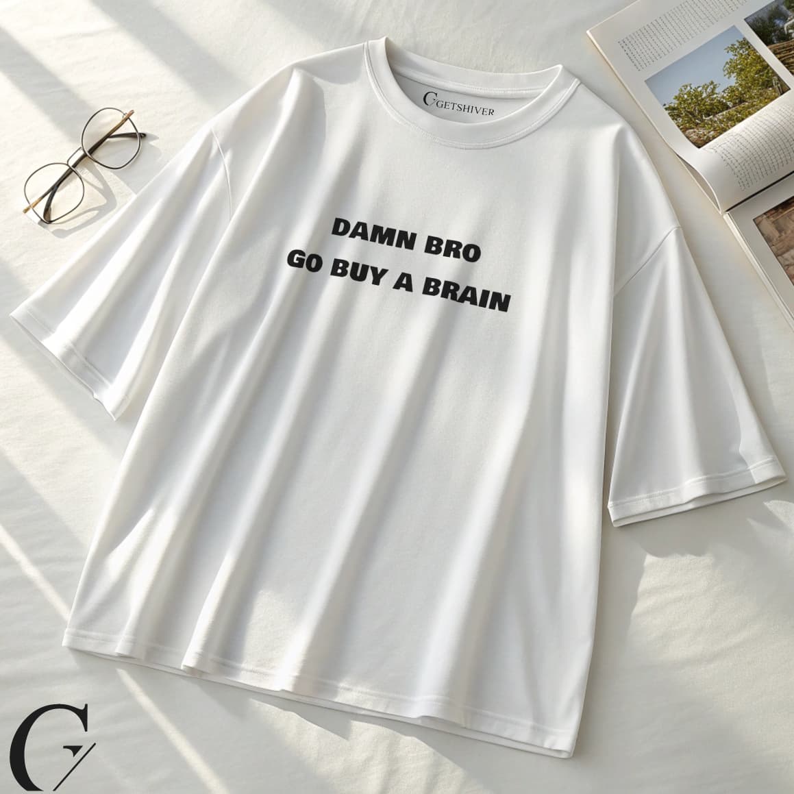 Buy A Brain Tee – Oversized Drop Shoulder T-Shirt for Men & Women | Premium 200 GSM Cotton | GetShiver Streetwear