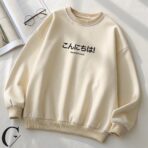 Made from a heavyweight cotton-blend fabric, it offers a relaxed, unisex fit with a soft brushed interior that keeps you cozy all day. Whether you’re layering it for a street look or styling it solo, this sweatshirt speaks quiet confidence.