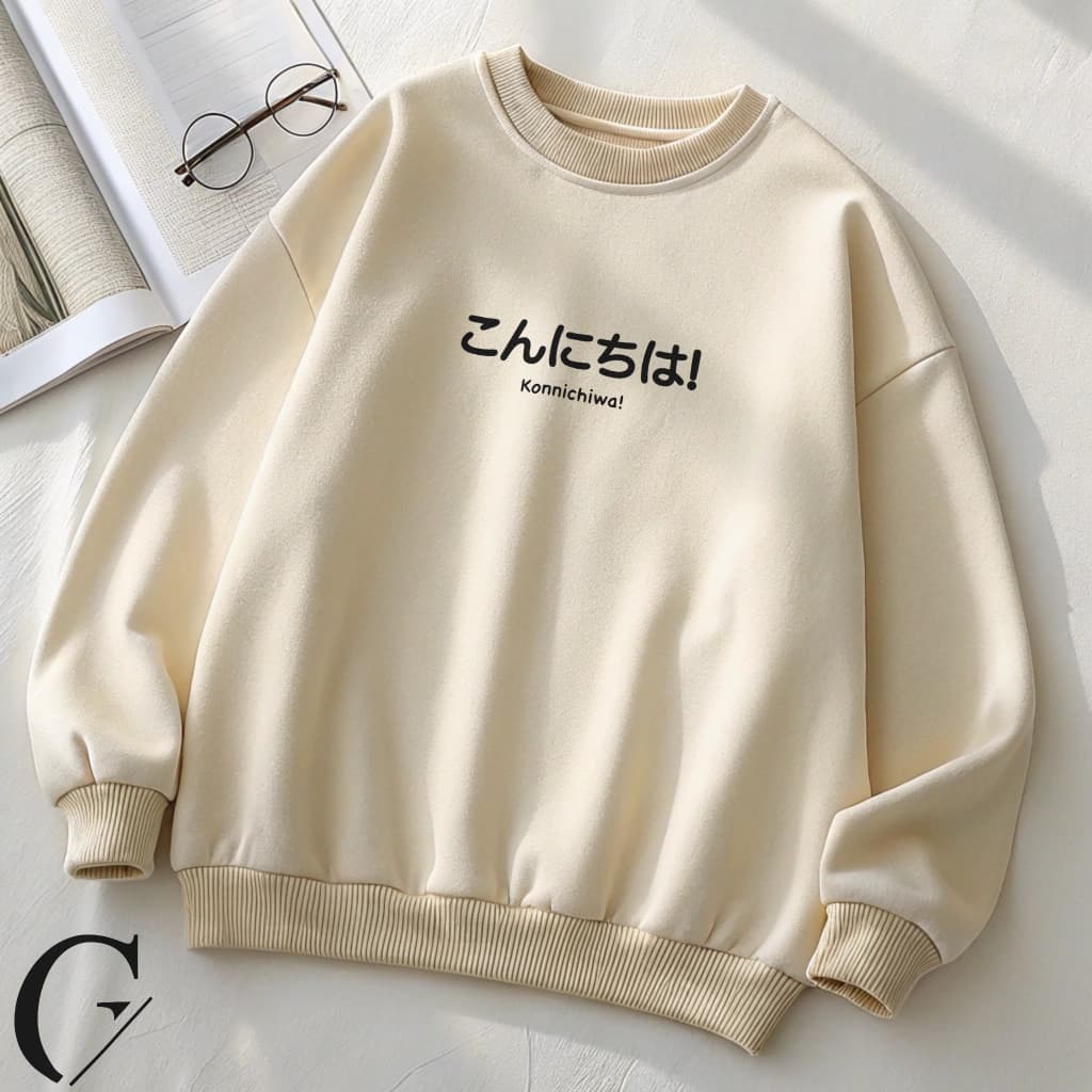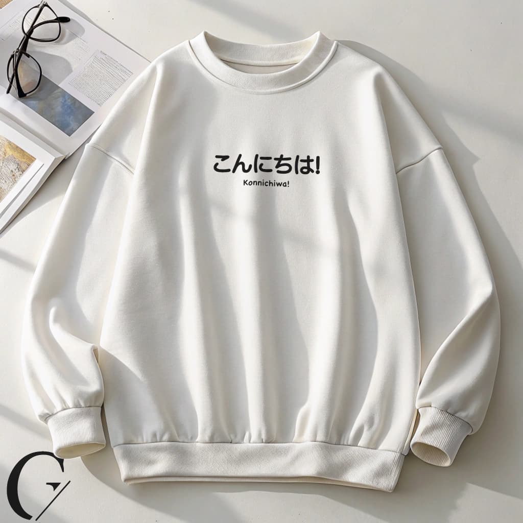 Be the first to review “Konnichiwa Oversized Sweatshirt – Minimal Japanese Streetwear by Getshiver | Premium Unisex Pullover”