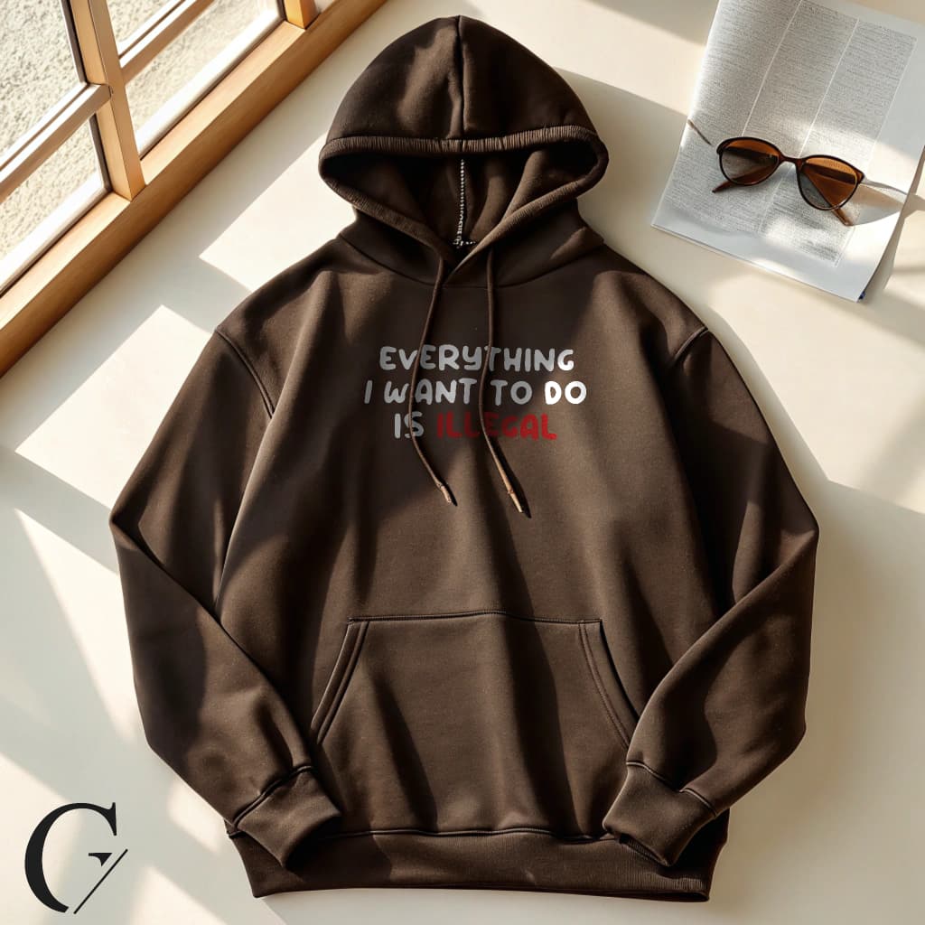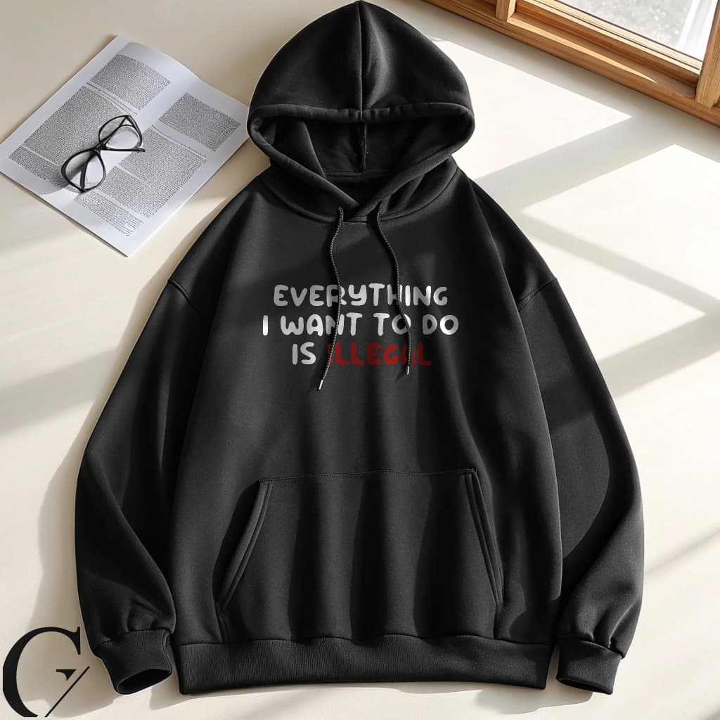 With its iconic “Everything I want to do is illegal” text print and relaxed, maximum-comfort fit, this streetwear staple brings together rebellious attitude and effortless style in one cozy package. Perfect for casual hangs, making a bold statement, or anyone who wears their mood on their sleeve.