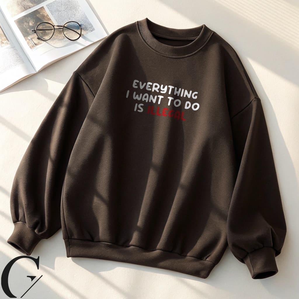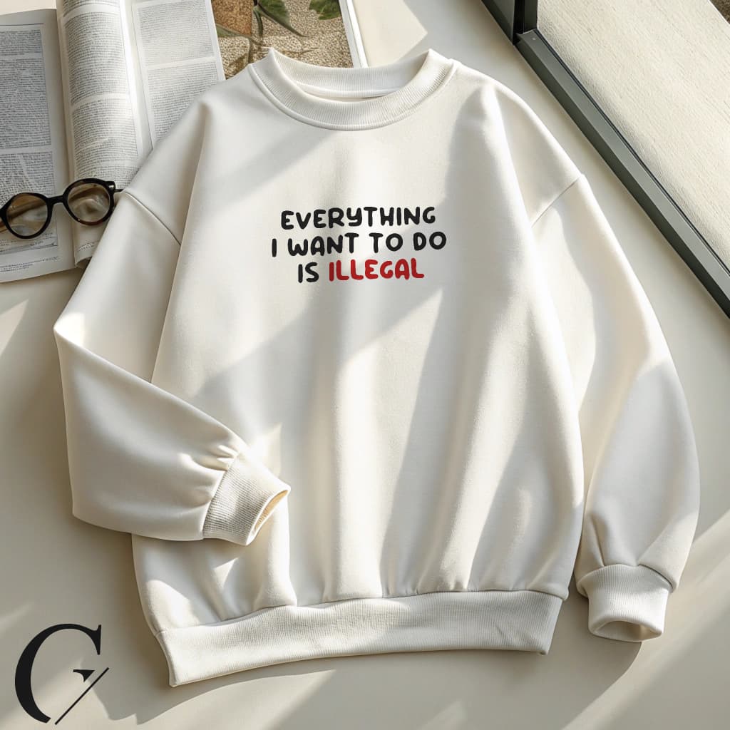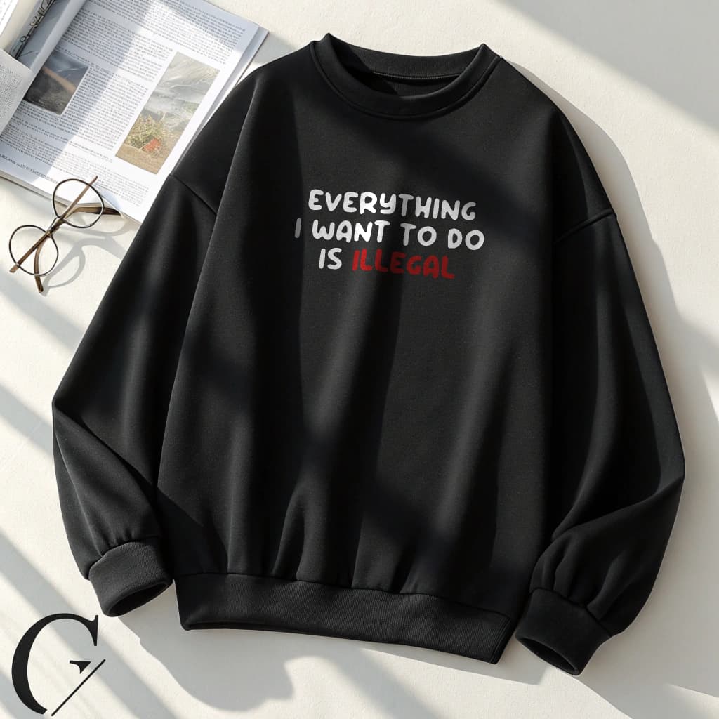 With its iconic “Everything I want to do is illegal” text print and relaxed, maximum-comfort fit, this streetwear staple brings together rebellious attitude and effortless style in one cozy package. Perfect for casual hangs, making a bold statement, or anyone who wears their mood on their sleeve.