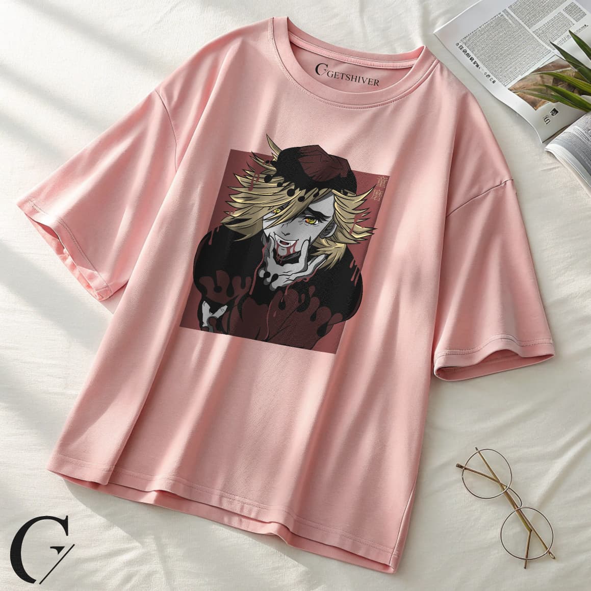 Featuring a striking frozen-inspired graphic, it captures the essence of icy strength and calm dominance — perfect for anime fans who love making a statement. Whether you’re hitting the streets or chilling with friends, this tee brings out your inner demon in style.