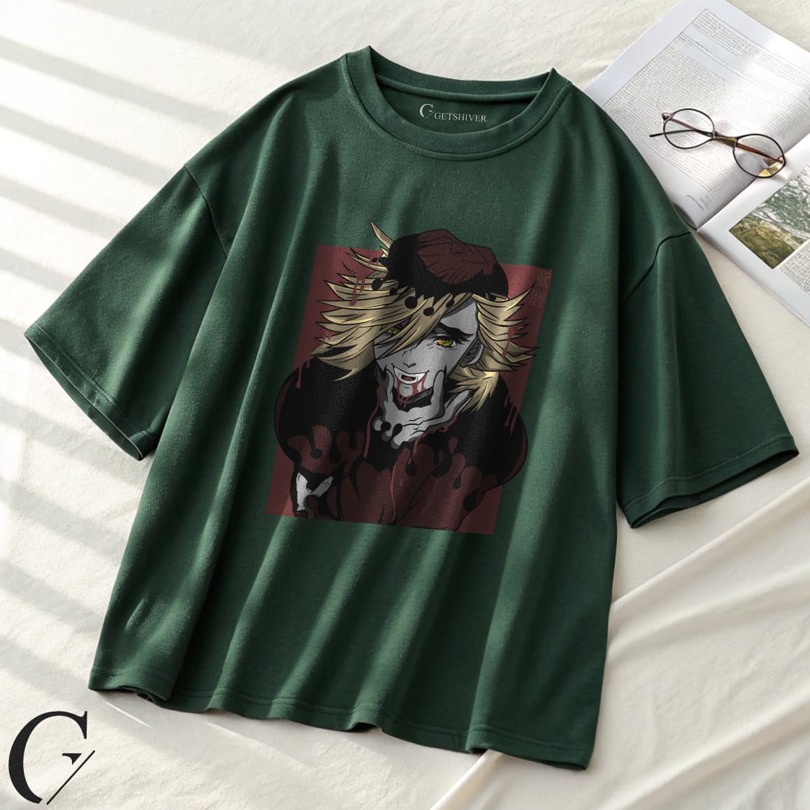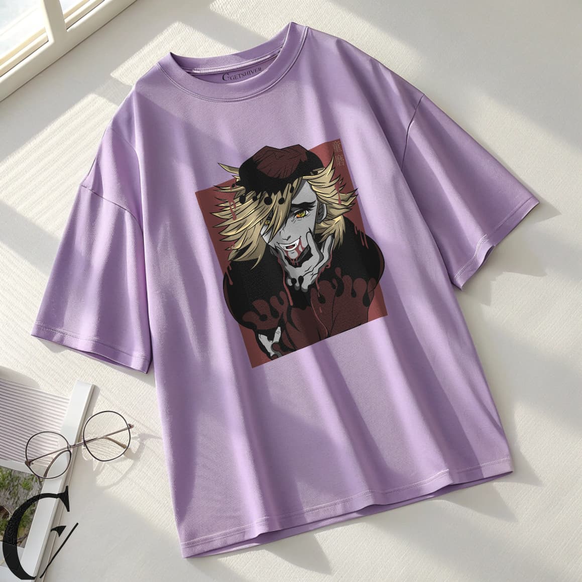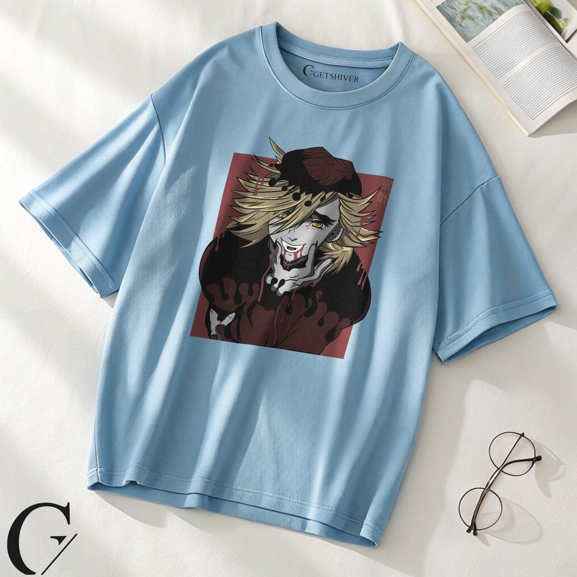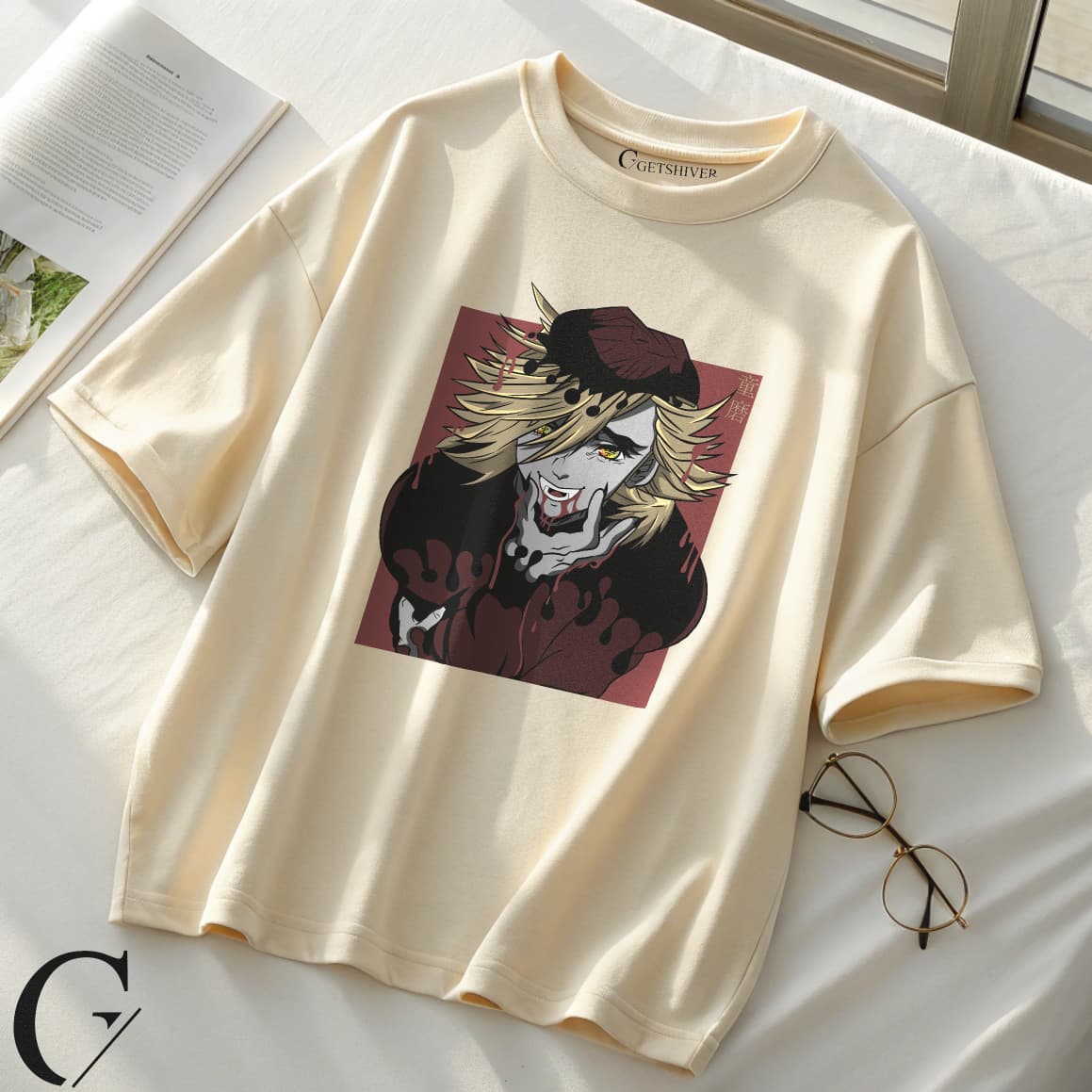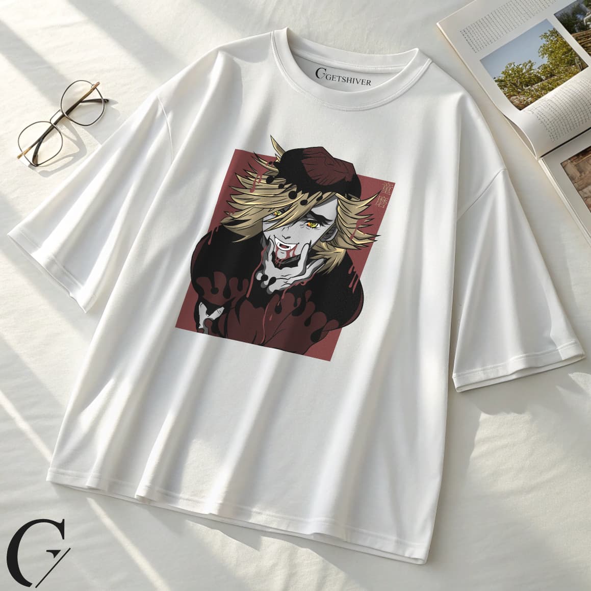 Unleash your dark aura with the Upper Moon II: Frozen Demon Tee, inspired by the chilling power and mystique of anime’s most feared demon. Crafted from premium 100% cotton, this tee offers a soft, breathable feel with a modern oversized fit that blends comfort and bold streetwear energy.